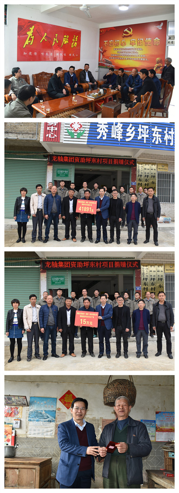 隨后,在村部舉行龍軸集團資助坪東村項目捐贈儀式,村支書代表村兩委接受了公司資助坪東村建設村部文化廣場的15萬元和公司全體員工募捐的善款41891元。曾凡沛鄭重要求要善用善款,切實建設好村部文化廣場,讓村里有個好的宣傳環境,讓村民活動有個好去處,豐富農村精神文化生活。