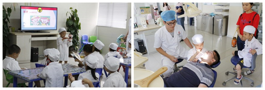 活動(dòng)當(dāng)天,小朋友變身“小牙醫(yī)”開(kāi)始體驗(yàn)之旅,在寓教于樂(lè)的角色扮演中了解到壞牙的樣子和產(chǎn)生原因,學(xué)習(xí)到各種牙齒小常識(shí),認(rèn)識(shí)了愛(ài)牙、護(hù)牙的重要性,還學(xué)會(huì)了正確的刷牙方法--巴士刷牙法。最后,親子活動(dòng)在小朋友們舉起“優(yōu)秀小牙醫(yī)”獎(jiǎng)狀的合影中圓滿結(jié)束。