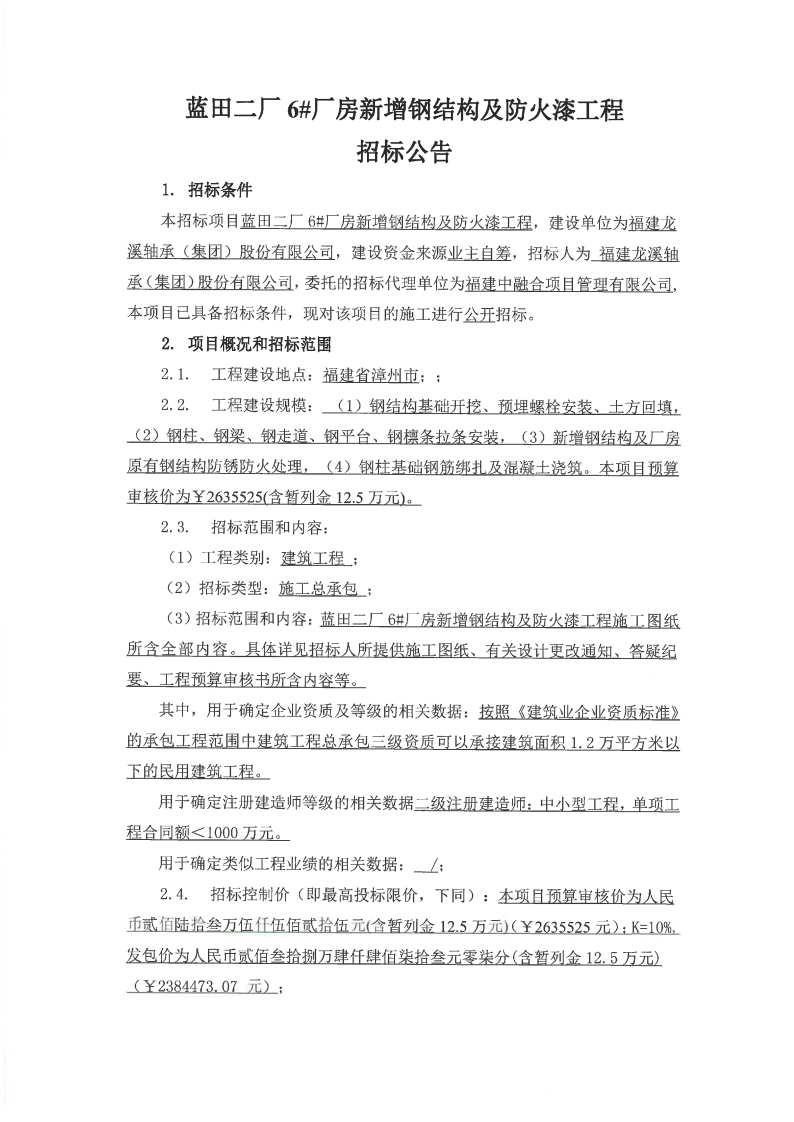 龍軸集團(tuán)藍(lán)田二廠6#廠房新增鋼結(jié)構(gòu)及防火漆工程招標(biāo)公告公示