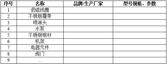 *設(shè)備退磁部分為線圈式退磁;采用不銹鋼網(wǎng)帶式傳輸鏈條,并配有噴淋裝置配合網(wǎng)帶的傳輸對零件進(jìn)行噴淋清洗。設(shè)備總功率:≤30KW。