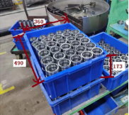1.43車廂前后方向(牽引方向)設(shè)計有固定式護(hù)欄(高300mm),且需設(shè)計有方便手推車廂到每個工位裝卸料的把手。