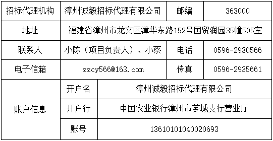 地點:漳州誠毅招標代理有限公司開標大廳