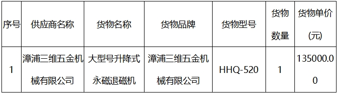 二、項目名稱:大型號升降式永磁退磁機采購與安裝
