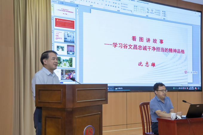沈志雄老師圍繞“忠誠是谷文昌精神品格最厚重的基石”“干凈是谷文昌精神品格最自然的底色”“擔當是谷文昌精神品格最耀眼的華章”三個方面系統(tǒng)講述了谷文昌同志生平事跡,通過一幅幅珍貴的影像資料和一個個生動的事例,大家更全面地理解谷文昌精神品格的內(nèi)涵,受到了深刻的精神洗禮。