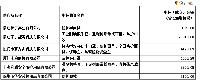 龍軸集團勞保用品招標中標公告