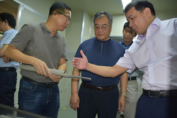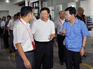 2017年5月9日,田力普(原國家知識產(chǎn)權(quán)司黨組書記、局長,左四)、李川(原福建省副省長,左一)到龍軸調(diào)研