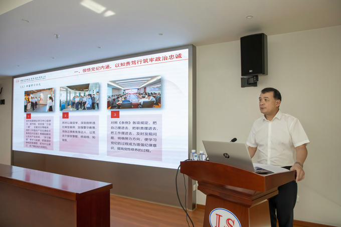 陳晉輝從“領(lǐng)悟黨紀(jì)內(nèi)涵,以知責(zé)篤行筑牢政治忠誠”“明晰紀(jì)律要求,以明責(zé)敢為落實(shí)主體責(zé)任”“涵養(yǎng)清正風(fēng)氣,以擔(dān)責(zé)奮進(jìn)推動(dòng)公司發(fā)展”等三方面進(jìn)行了深入闡述。他指出,黨的紀(jì)律是黨的各級(jí)組織和全體黨員必須遵守的行為規(guī)則,全面深入學(xué)習(xí)黨的紀(jì)律是每一名黨員和領(lǐng)導(dǎo)干部必須完成的政治任務(wù)。公司黨員干部要堅(jiān)持“學(xué)”在先、“悟”在深、“踐”在實(shí),真正領(lǐng)會(huì)黨的紀(jì)律的實(shí)質(zhì)和內(nèi)在要求,進(jìn)一步強(qiáng)化紀(jì)律意識(shí)、加強(qiáng)自我約束、提高免疫能力,增強(qiáng)政治定力、紀(jì)律定力、道德定力、抵腐定力。