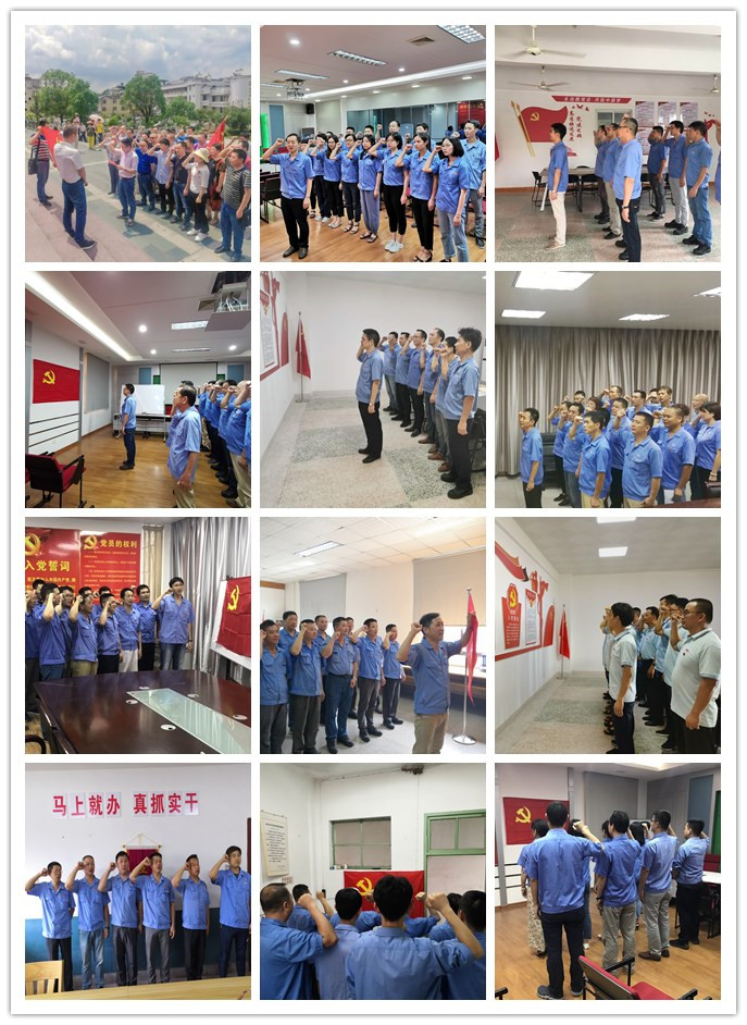 ????近日來,各黨總支、黨支部紛紛在黨團活動室或革命圣地開展重溫入黨誓詞活動?!拔抑驹讣尤胫袊伯a黨,擁護黨的綱領,遵守黨的章程,履行黨員義務,執行黨的決定,嚴守黨的紀律,保守黨的秘密,對黨忠誠,積極工作,為共產主義奮斗終身,隨時準備為黨和人民犧牲一切,永不叛黨”,面對鮮紅的黨旗,緊握右拳,以昂揚的斗志和飽滿的熱情,鏗鏘有力地宣讀入黨誓詞,重溫對黨莊嚴而神圣的誓言,讓每一位黨員的心靈再次受到震撼和洗禮,進一步增強了黨員的使命感和責任感。