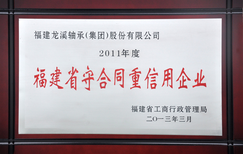 近日,公司在福建省工商局2011年度福建省守合同重信用企業(yè)創(chuàng)建活動(dòng)中獲得“福建省守合同重信用企業(yè)”榮譽(yù)稱號。