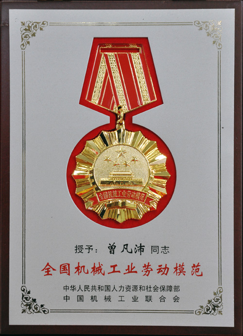 第二屆全國機械工業(yè)勞動模范表彰大會近期在北京召開,公司董事長曾凡沛榮獲“全國機械工業(yè)勞動模范”稱號,該獎由中華人民共和國人力資源和社會保障部、中國機械工業(yè)聯(lián)合會聯(lián)合評選,以表彰全國機械工業(yè)出類拔萃的工作者。
