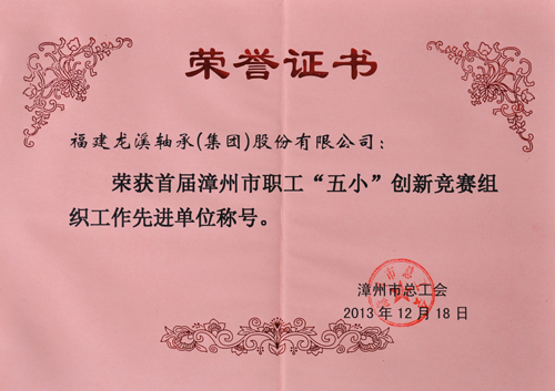 在此次創新競賽活動中,公司榮獲首屆漳州市職工“五小”創新組織工作先進單位、“齒圓環開坡口工藝改進”項目獲得首屆漳州市職工“五小”創新項目一等獎、“3MZ1410A、3MZ1420A數控化升級改造”等11個項目獲得首屆漳州市職工“五小”創新項目優秀獎、連慧進、鄭慶順、吳文福、唐建聰、邱志輝5位員工被授予首屆漳州市職工“五小”創新能手稱號、洪麗玲被授予首屆漳州市職工“五小”創新組織工作先進個人。