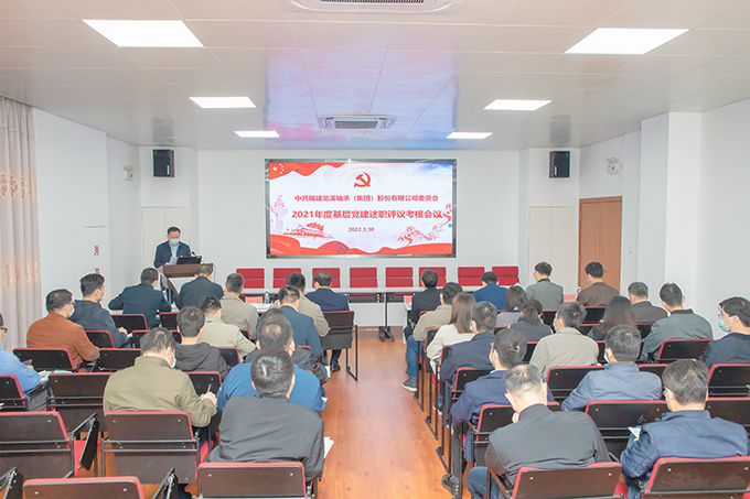 2021年3月30日,龍軸集團召開 2021年度基層黨建述職評議考核會議。會議由公司黨委副書記劉明福主持,公司班子成員,總經理助理,各黨總支、黨支部負責人,黨務工作人員,基層黨員代表等參加會議。