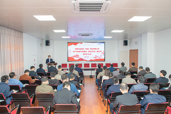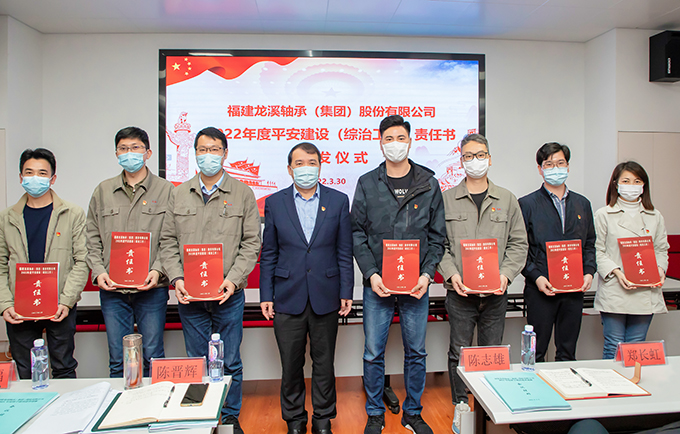 2022年3月30日,龍軸集團舉行平安建設(綜治工作)責任書簽訂頒發儀式。集團黨委書記、董事長陳晉輝分別與在漳權屬企業負責人簽訂了《2022年平安建設(綜治工作)責任書》,集團創建“平安單位”分管領導劉明福分別與集團直屬部室、車間負責人簽訂了《2022年平安建設(綜治工作)責任書》。陳晉輝向在漳權屬企業、集團直屬部室、車間負責人頒發了責任書。